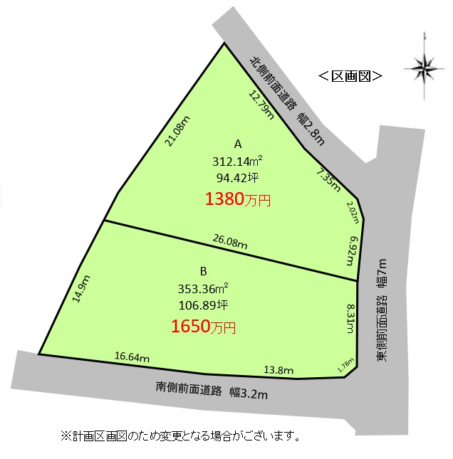 接道状況 | 北側接道幅 約2.8m 東側接道幅 約7m 南側接道幅 約3.2m |