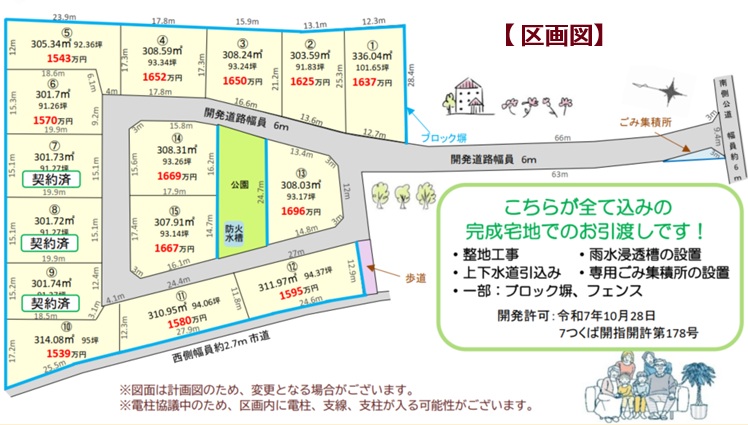 | 備考 | ※本物件は特定建築条件付売買予定地11区画、専用住宅4区画の計15区画分譲地です。 特定建築条件付売買予定地を購入された方は、土地売買契約後3ヶ月以内に建物請負契約の締結が条件となります。詳細はお問合せ下さい。 【自社開発・完成宅地渡し】 つくば市上横場に全15区画、ゆとりある敷地×整備済み宅地分譲地が誕生します! ■【敷地面積300㎡超 × 建ぺい率60%】 贅沢な平屋も、開放感ある二階建ても可能。 余裕ある庭や駐車スペースが確保でき、ゆったりとした暮らしが叶います。 ■【在宅ワークも快適に】 ・静かな住環境でテレワークにも最適 ■【安心・快適な暮らしを支える設備】 ◎上下水道完備 ◎雨水貯留槽設置 ◎専用ごみ集積所あり ◎一部ブロック塀+メッシュフェンス施工 ◎防火水槽設置 ◎公園 遊具ベンチ設置 |